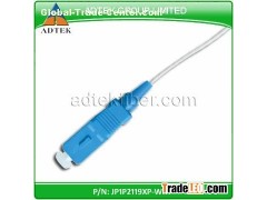 We supply SC fiber optic pigtails with 900µm buffered 62.5µm, 50µm fiber and SM fibers with SC, ST-style, LC and MT-RJ connections on one end and loose fiber on the other end. Used for fusion splicing to OSP or building cables or pigtailing to active devices such as lasers or LEDs.